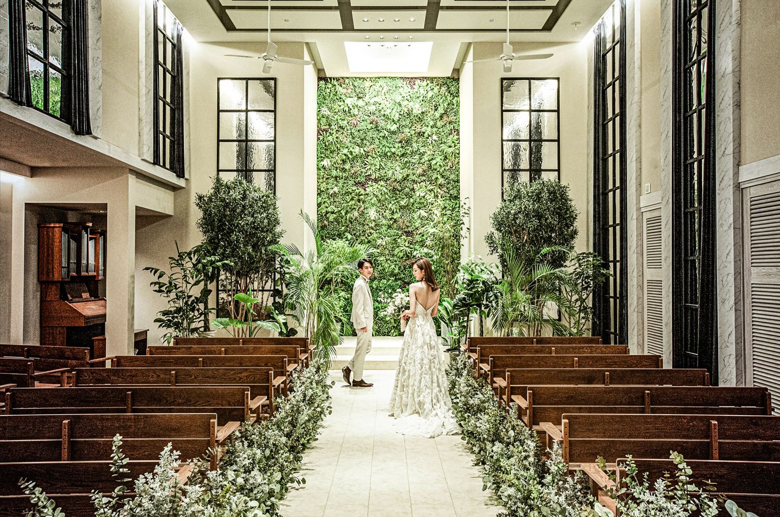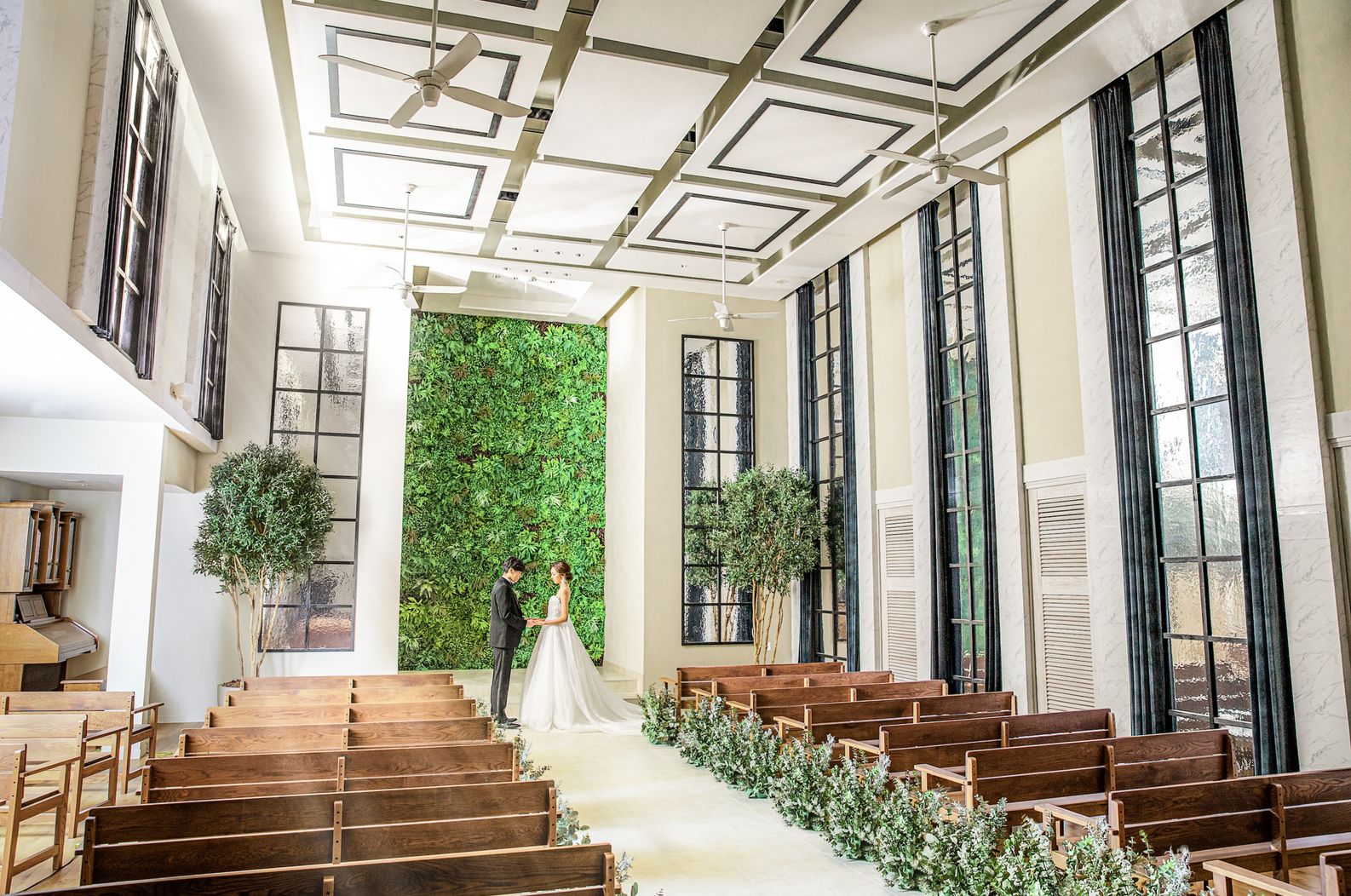 03.【独立型チャペル】グリーンウォールが印象的な空間は開放感抜群!ドラマチックな誓いを
