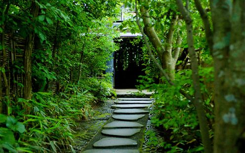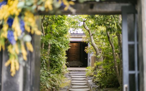 鮮やかな緑に囲まれたエントランスは、まるで物語の中に続く秘密の小路のよう。「大人の隠れ家」へと誘うような、ここから始まる特別な一日への期待が高まる空間です。