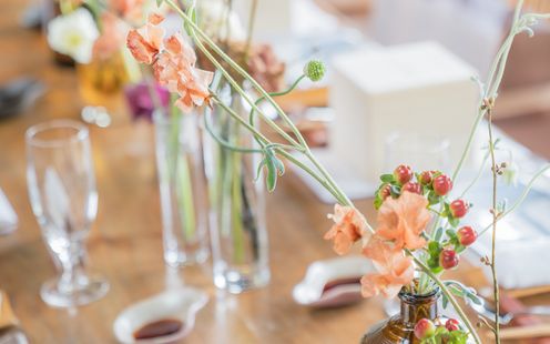 ふたりの想いやコンセプトに寄り添いながら、専属コーディネーターが丁寧にプロデュースします。装花やペーパーアイテム、細やかなディテールまでトータルに整えることで、結婚式の華やかさはもちろん、ゲストへの感謝の気持ちも伝えます。趣味や手作りのアイテムなど、持ち込みは柔軟に対応しているため、「好き」や「こだわり」を気軽に相談できるところも魅力。ふたりらしい空間を作り上げます。