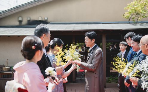 やわらかな陽光が降りそそぎ、自然体のふたりを祝福してくれるような優しい空間が魅力のガーデン挙式。フラワーシャワーや聖歌隊、ゴスペルなどの演出も可能で、祝福の瞬間を華やかに彩ってくれます。また、提携する鳥飼八幡宮、福岡縣護国神社、筑前國一之宮 住吉神社での神前式にも対応しているため、形式にとらわれず、ふたりらしいスタイルの挙式を選ぶことができます。