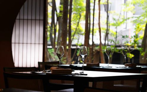 かつて料亭として多くの賓客をもてなしてきた「和多伴」の、歴史と伝統を受け継いだフレンチレストランを当日はふたりで貸切。