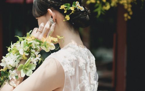 ふたりの憧れのスタイルを丁寧に聞き、専属フローリストがふたりらしいおもてなし空間を創り上げます。エントランスからブーケ、ヘッドドレスまでトータルスタイリングしてセンスの良さをアピールして。