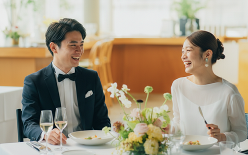 上質さと美しさを引き立てる、ディテールにこだわった運命の一着をコーディネートします。ドレス・和装ともに幅広いブランドとデザインが揃い、ブライダルフェアではシルエットやサイズなど細かなこだわりまで相談可能。専属のドレスコーディネーターが、打合せから試着、当日の仕上がりまで一貫して寄り添うため、理想のスタイルを叶えられます。
