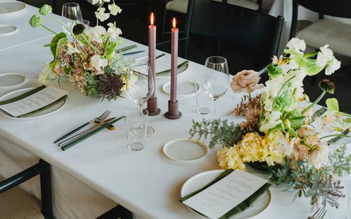 ふたりの憧れのスタイルを丁寧に聞き、専属フローリストがふたりらしいおもてなし空間を創り上げます。自然光が差込む上質空間を寛ぎに満ちた雰囲気にしてみては。
