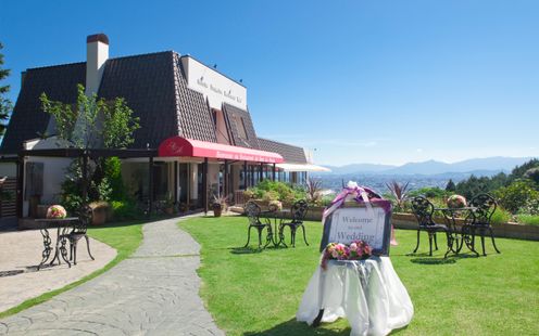 何も遮るものがない青空と自然に囲まれて挙式やウェルカムパーティ、楽器演奏などガーデンの使い方はふたり次第! 自由度の高さが自慢のガーデンです。