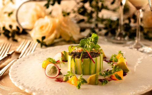 厳選食材で調理され、芸術的な盛り付けもゲストの五感を刺激するフランス料理の数々。レストランウエディングならではの味わい深い逸品でゲストをおもてなしします。
