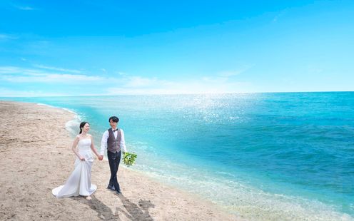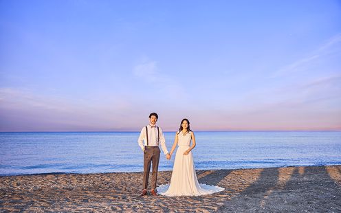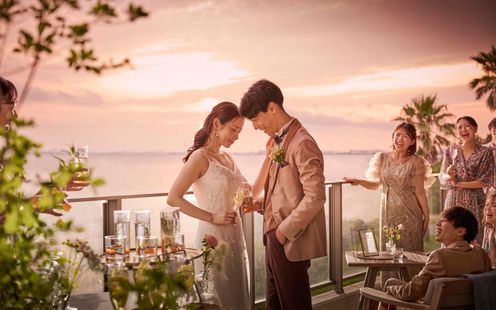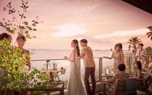 大浜公園の豊かな自然に抱かれた、全館オーシャンビューのリゾートウェディング。穏やかな海を望む至福のロケーションで、本質の美と心地よさを追求した、新しいオーセンティックウェディングが叶います。※完成予想図