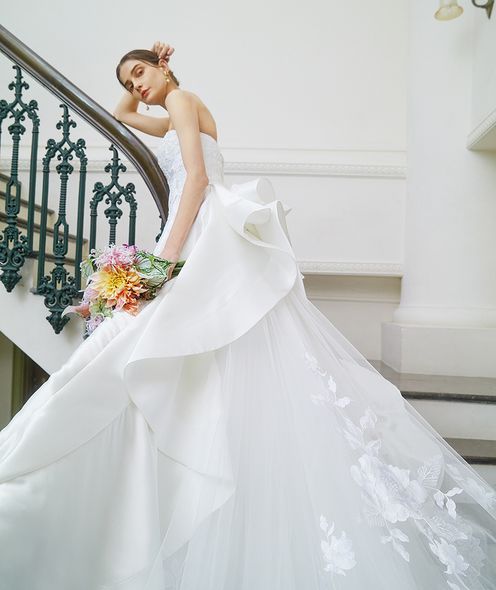 ドレスは「大人のロマンティック」をコンセプトに、日本の花嫁のニーズに合わせて開発されたオリジナルコレクションをはじめ、世界各国の一流インポートブランドも取り揃えています。「ROSA CLARA」「Giuseppe Papini」などの洗練されたドレスは、花嫁一人ひとりの個性や憧れを引き立て、特別な一日をより華やかに彩ります。