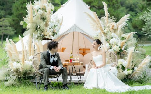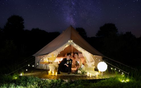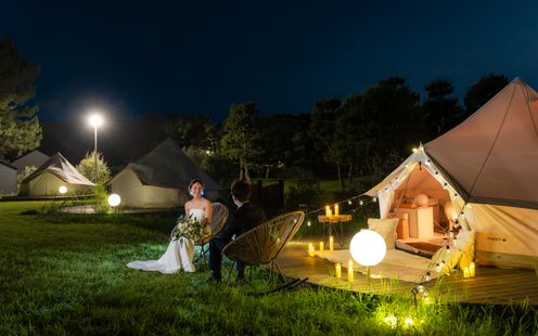 深い緑に抱かれ、心からの言葉を届けあう、自由で神秘的なキャンプウェディングの挙式を挙げられます。