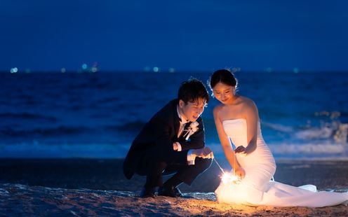 裸足で波打ち際を歩いたり、夕陽をバックにロマンチックなシルエット写真を撮影したりと、リゾート感あふれる一枚が叶います。