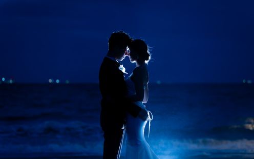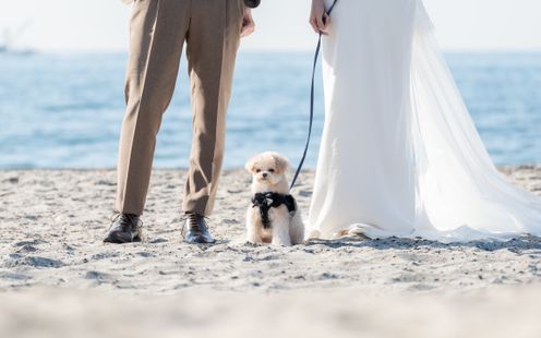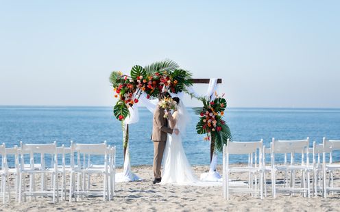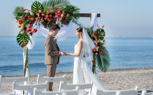 白砂のバージンロードで、映画のような誓いを