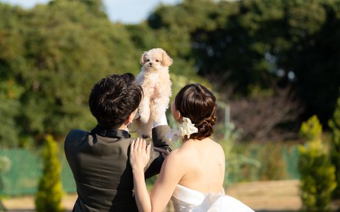 柔らかな芝生の上、ふたりのもとへ指輪を運ぶ「リングドッグ」の演出も、この広大なロケーションなら思いのままです。