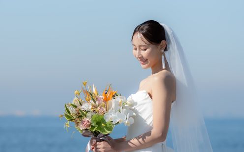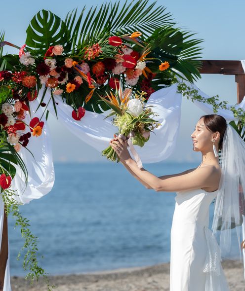 潮風を肌に感じ、寄せては返す波音をBGMに誓い合うセレモニー。