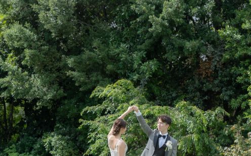 高くそびえる木々の間から差し込む柔らかな木漏れ日は、まるでお二人を祝福する天然のスポットライト。