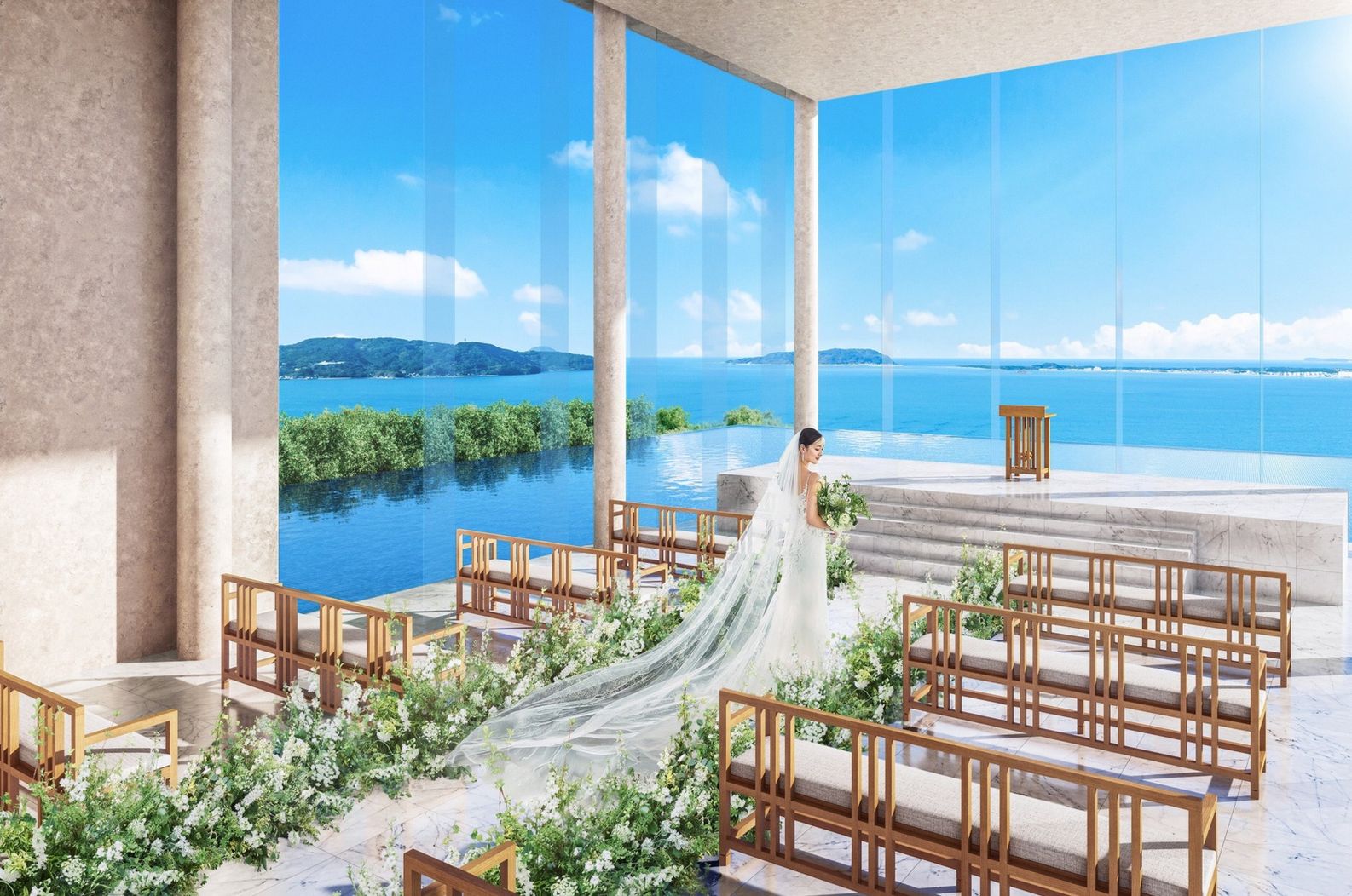 02.<オーシャンビューの大パノラマ>光×海の祝福に包まれた開放感溢れるチャペルで感動挙式