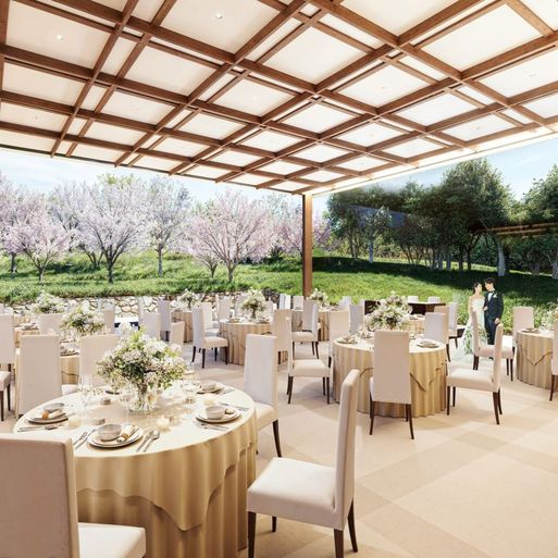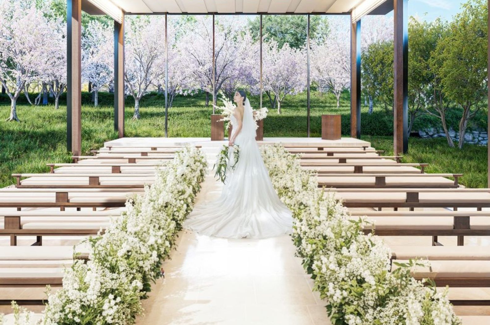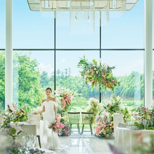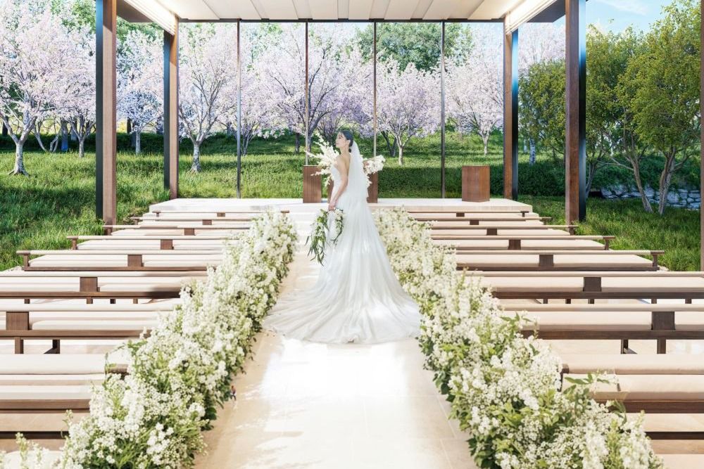 02.<和モダンチャペル>3面ガラス張りの自然美あふれる空間は花嫁が絵になるチャペル