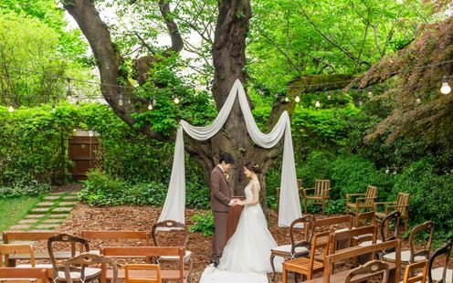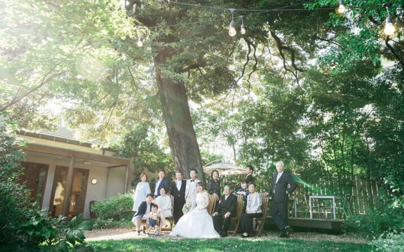 シンボルツリーの椎の木が佇む緑あふれる温かな空間。ふたりのお家に招くようなひとときに