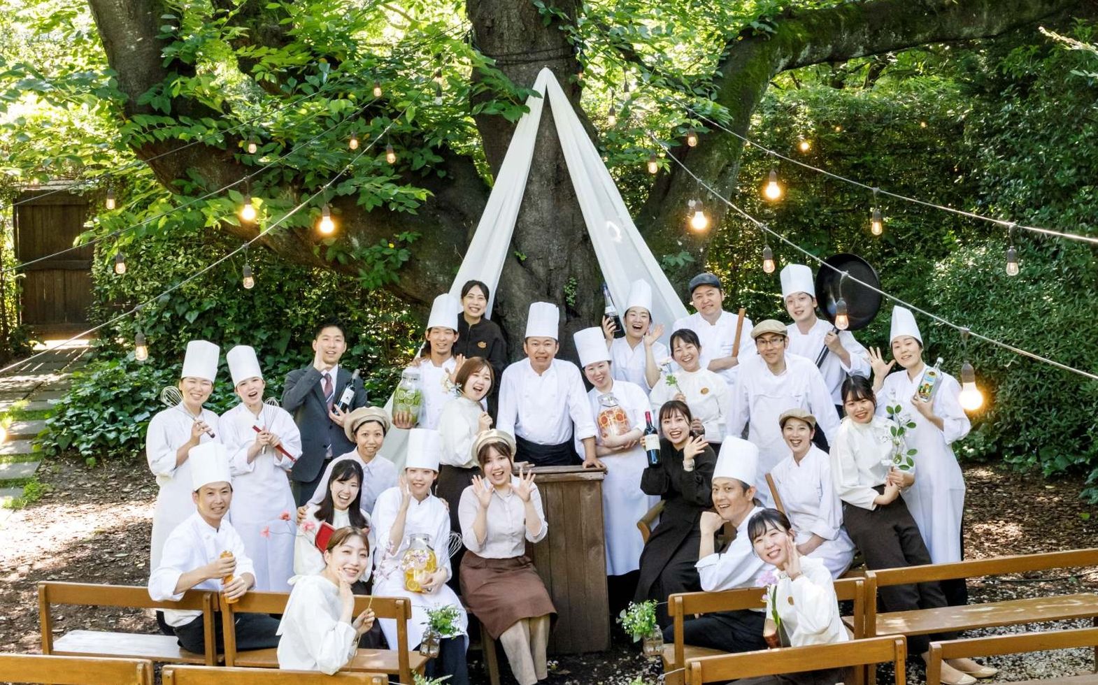 樹齢120年のシンボルツリーに見守られる時間。一年を通して緑を感じる自然が舞台