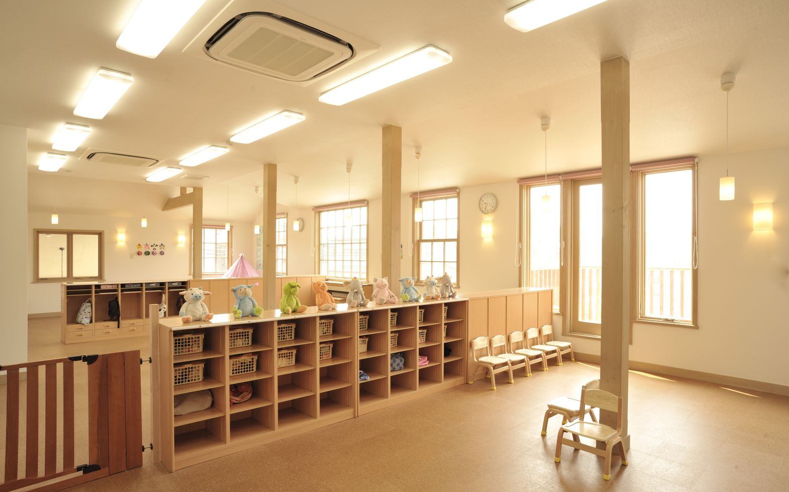 敷地内に保育園を併設。平日は保育施設として園児たちでにぎわう保育園。