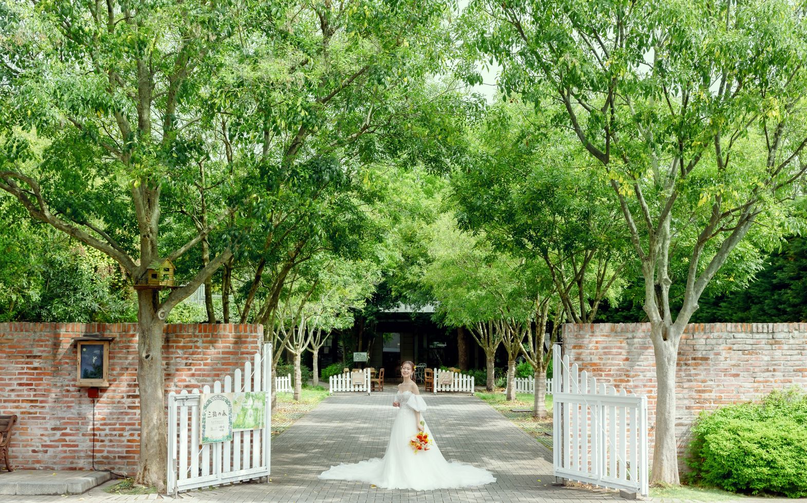 三橋の森は結婚式場をはじめ、フレンチレストラン、ベーカリーカフェ、カルチャースクール、保育園が一体となった複合施設です。「桜」と「どんぐり」の大樹が見守る豊かな緑に包まれた、静かな住宅街に佇む森をテーマにしています。「ラ・クラリエール」は、フランス語で「森の中のひだまり」を意味し、約2000坪を超える敷地内には数100種類以上もの植物が美しく四季を彩っています。プランナー、シェフ、フローリスト…全員で作り上げた結婚式の舞台が、ふたりの物語の始まりに。