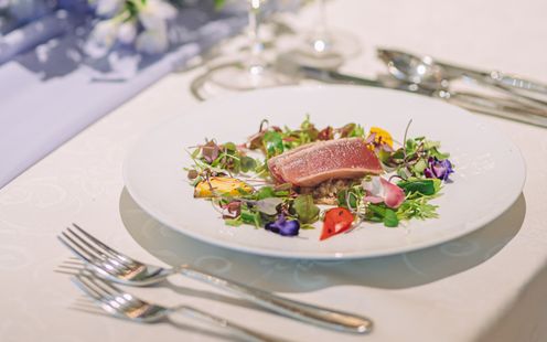 手間隙を惜しまず、下準備からソースまで手作りする料理は絶品!メニューはふたりがカスタマイズできる「プリフィックススタイル」。招待するゲストの顔を思い浮かべながら、ふたりらしいおもてなしのコースを自由に組合せて作ることできます。また、希望に合わせて調理法や味付けもアレンジするなどゲストファーストの料理の提供もOK。直接シェフと打合せしてふたりならではのオリジナル料理も対応いたします。例えば、ふたりが旅先で味わった思い出の料理や、郷土の食材を取り入れるなど気軽に相談できるのも嬉しい限り。ガーデンでBBQを行うことも可能!