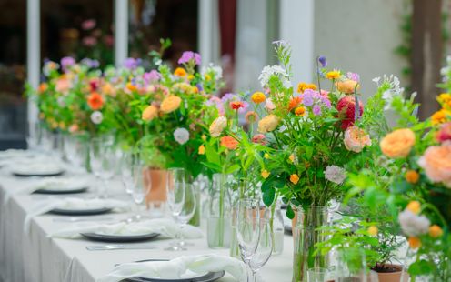 ガーデンを使用したBBQやデザートビュッフェなど、屋内とガーデンを最大限に利用できます。挙式から披露宴までオールガーデンで行う、エアリーウェディングももちろん可能。自由なビュッフェスタイルなら、カラフルなお花に囲まれながら、ゲストと食事や会話、写真撮影を楽しむ時間を心ゆくまで堪能できます。
