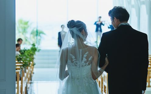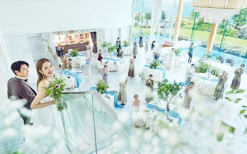 プライベートガーデンはオーシャンビューのオープンエアな空間。きらめく海を背景にしたお色直し入場は、ゲストの視線を集める印象的なワンシーンに。水辺を活かした演出やフォトタイムなど、多彩な使い方でパーティをより華やかに彩ります。自然の心地よさと非日常のロケーションが調和し、ゲストとの交流をより自由に、より思い出深いものへと演出♪(イメージ写真)