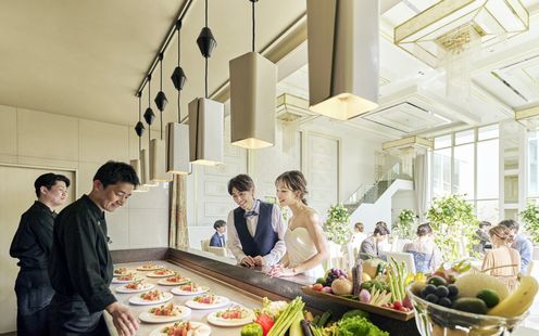 ミシュランガイドで一つ星を獲得したシェフが作るスペシャリテ。お箸で気軽に楽しめる和洋折衷のコースは、幅広いゲストに好評。ふたりの大切な想いをゲストへ届けるため、ララシャンスTOKYO BAY RESORTでは、その一皿一皿に心を込めて仕上げています。厳選食材とシェフの技が織りなす逸品は、味はもちろん、見た目も美しく、特別な1日を華やかに彩ります。さらに、ふたりの想いを込めたオリジナルメニューにも対応し、大切な人へ感謝の気持ちを伝える感動のひと皿をお届けします。ヴィーガン、アレルギーにも対応しますので気軽にご相談ください。焼き立てのクロワッサンはフェアでも味わえますのでまずはご賞味を。