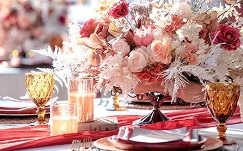 パーティ会場とは別に設けられたデザートタイム専用会場は、ゲストとより近い距離で過ごせる特別な空間。華やかな披露宴とは趣を変え、リラックスした雰囲気の中で一人ひとりとゆっくり言葉を交わせます。スイーツを楽しみながら自然な笑顔があふれるひとときは、これまでにない新しいウエディングスタイル。ふたりらしいおもてなしで、心に残る温かな時間を演出します。
