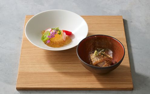 シェフたちが「感動の一皿」をゲストの目の前で仕上げるライブ感あふれる演出。立ちのぼる香りや調理の音、完成していく瞬間までもが特別なひとときを彩ります。出来立てならではの美味しさはもちろん、五感で楽しむ体験がゲストの記憶に深く刻まれます。料理が仕上がる瞬間の高揚感とともに、会話も弾む贅沢な時間。おもてなしの想いが伝わる、心に残るひと皿をお届けします。