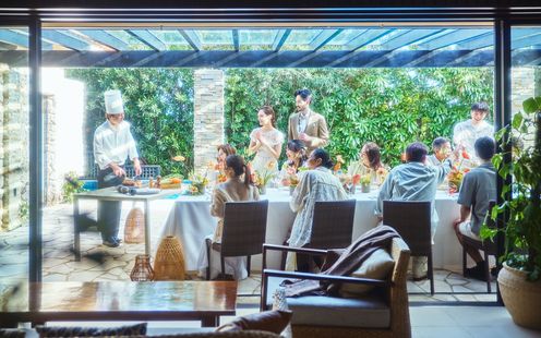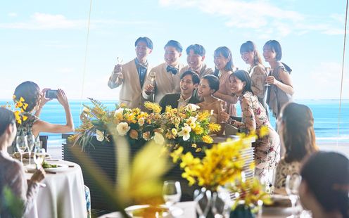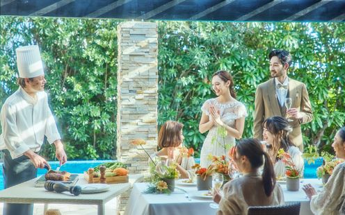 結婚式の余韻を感じながら、大切なゲストを美食でもてなすパーティ。新たに誕生するレストランまたは、シギラベイサイドスイートアラマンダのプレミアハウスで贅沢な時間が叶います。シェフによる料理説明やグリルの演出、映像や手紙で想いを伝えるひとときも。家族や近しい人たちと過ごす、笑顔と感動に満ちた祝宴を。