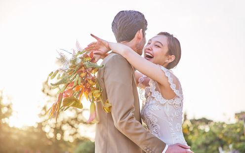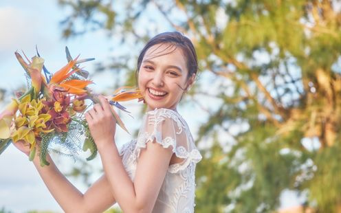 溢れんばかりの陽光と美景を活かしたふたりらしいコーディネート
