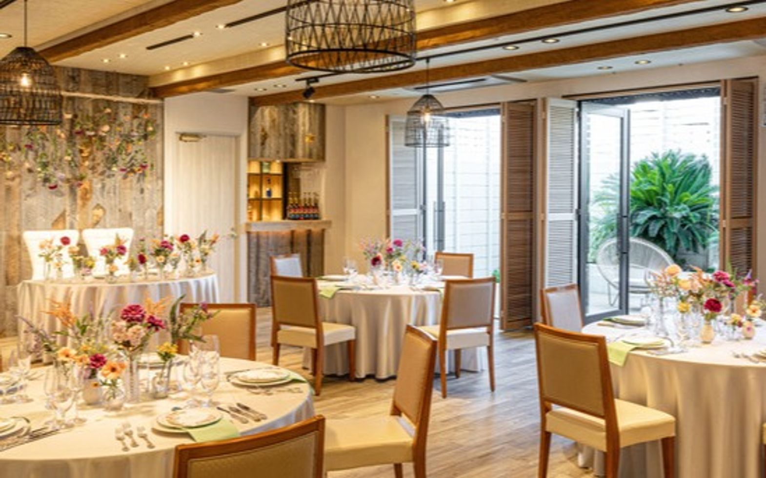 モルディブの水上ヴィラをイメージさせるリゾート風のパーティ空間。ひとつのテーブルを気心の知れたゲストと囲み、食事を会話を楽しむスタイルに最適。家族会食におすすめの少人数専用会場です。