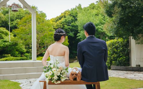 チャペル前に広がるのは、四季折々の自然豊かなガーデン。アフターセレモニーとして、フラワーシャワーやバルーンリリース、幸せの鐘を鳴らすセレモニーなど、思い思いの時間をお過ごしください。