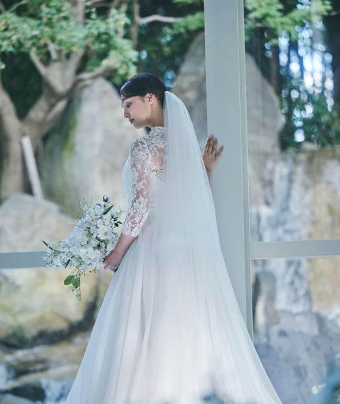 約10mの天井高、全長12mのバージンロードの圧倒的なスケールを誇る「フォンテーヌ」は、ホテルではめずらしい独立型のチャペル。大きな窓の奥には象徴的な滝が流れ、自然と光に包まれた癒しの空間に。愛犬と一緒に、ペット参加型のウェディングも実現可能です。アフターセレモニーでは、チャペル前ガーデンでのフラワーシャワーやバルーンリリース、幸せの鐘を鳴らすセレモニーなど、多彩な演出がお楽しみいただけます。