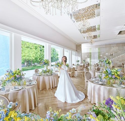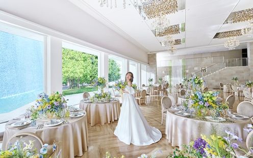高さ8mの外壁から水が流れる「アクアストリーム」が印象的な独立型チャペルは、天窓から降り注ぐ光がふたりを優しく照らします。チャペルでは、 教会式をはじめ人前式や神前式など、おふたりのスタイルに合わせた挙式が執り行えます。また祭壇の両サイドをスクリーンにし、ご両親へ感謝を伝える映像を投影したり、バージンロードの両端をライトアップするなど、より印象的な演出も可能です。挙式後は、開放的なチャペルガーデンへ。空と緑、水が織りなす心地よい空気の中、ゲストと共にフラワーシャワーやバルーンリリース、記念撮影などのアフターセレモニーをお愉しみいただけます。