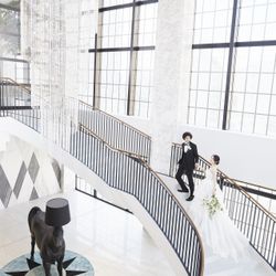 純白の大理石が輝くバージンロード、ガラス越しに輝くシャンデリアがふたりをより引き立る自然光が差込む6階に位置するチャペル。宗教色がないため、教会式・人前式からふたりらしい挙式スタイルをお選びいただけます。チャペル後方の大きな窓に仕掛けを加え、特別な演出を実現。チェロの生演奏はじめ、ゲストの皆様が思わず驚くようなサプライズも叶います。また、当館オリジナルの「マザーロード」という神秘的な演出も人気!さらに、天候に左右されることなく、アフターセレモニーを思いっきり楽しめる全天候型の大階段があるのも魅力です。シャンデリアを包み込むような螺旋階段は、フォトジェニックなスポットに。