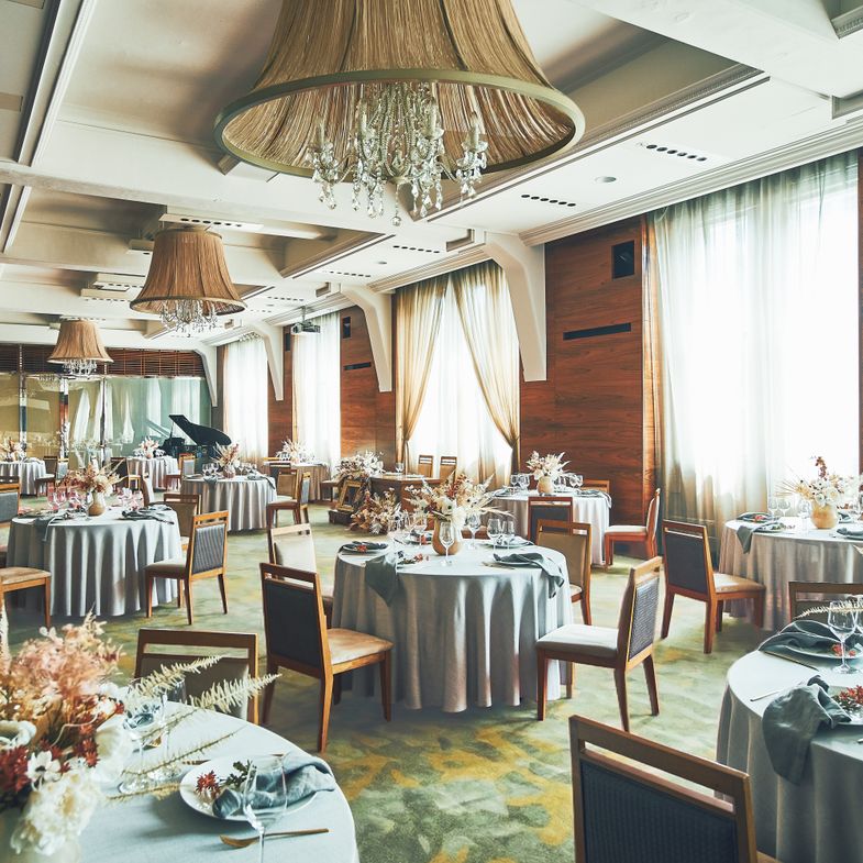 天井からはクリスタルが吊るされキラキラと煌びやかで、花嫁を一層美しく、綺麗にしてくれます。