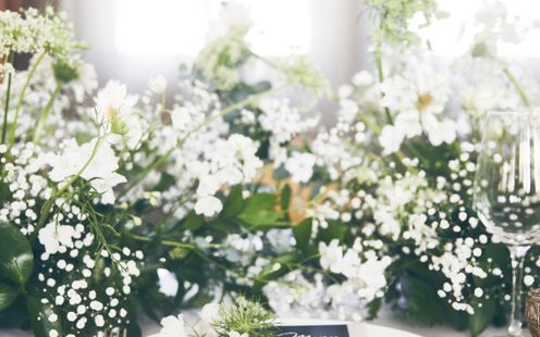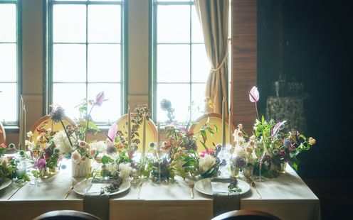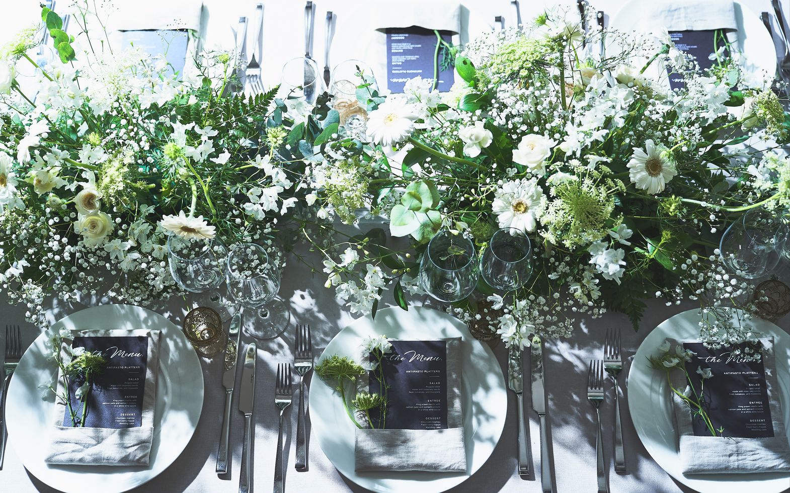ふたりのウェディングのコンセプトにあわせてフローリストが洗練されたスタイリングを提案