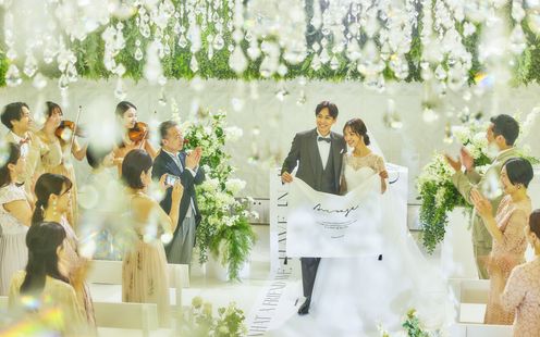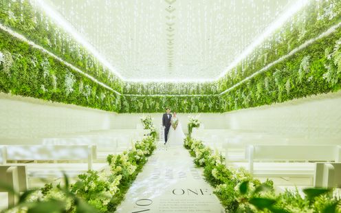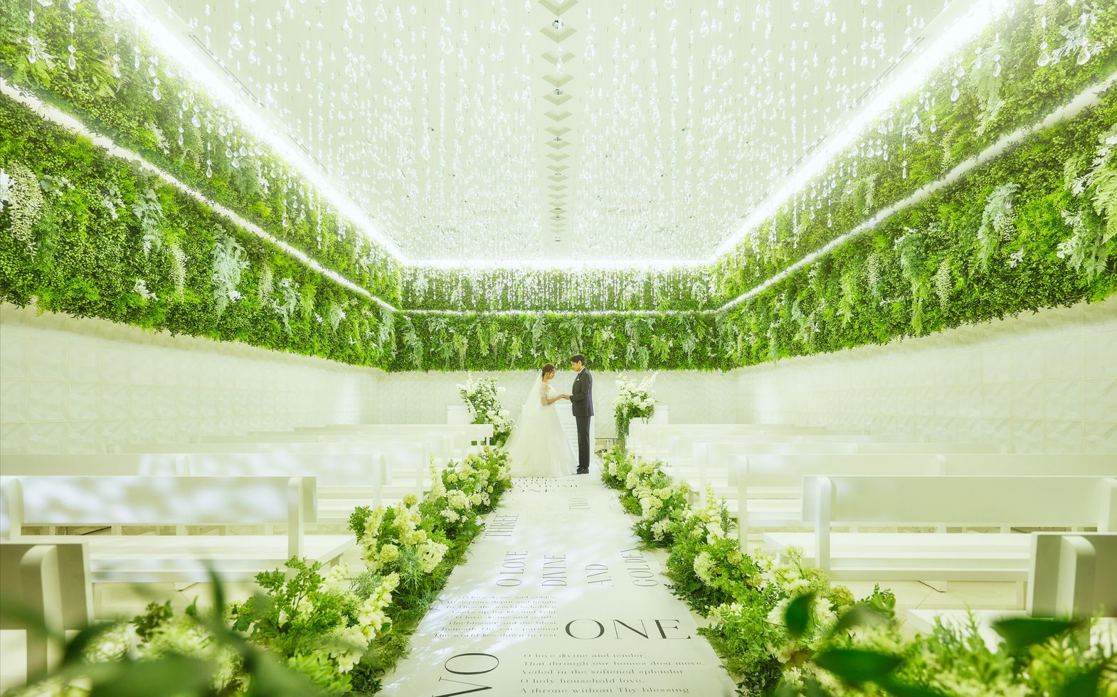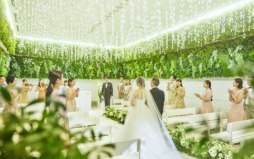 まるで光を閉じ込めた宝石箱のように、幻想的な雰囲気のチャペル。天井に散りばめられた無数のクリスタルはおふたりの姿を一層輝かせ、光の中に包まれて交わす誓いは息を呑むほどに感動的なシーンとなります。※着席80名まで