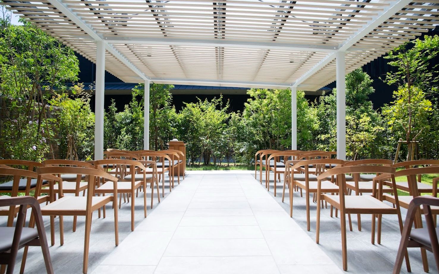 自然の光と緑に囲まれた開放的なガーデンで叶えるセレモニーは、心地よい風や陽光がふたりを優しく包む、あたたかな誓いの舞台。形式ばらずに想いを伝えたいカップルに人気のスタイルで、カジュアルながらも心に深く残る時間を演出します。青空の下で交わす誓いは、いつまでも輝く記憶としてゲストの心にも刻まれるはずです。