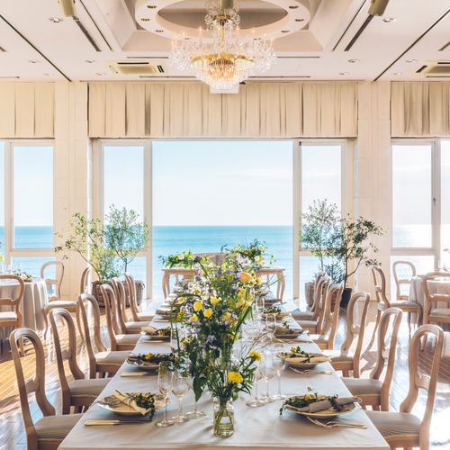 【時間】1日1組様貸切【宿泊】1泊プレゼント【アルバム】特別割引【衣裳】20~30%OFF【装花】ブーケhalfprice【料飲】特別割引【会場費】平日・仏滅割引【送迎サービス特典】タクシー・バス送迎 【宿泊】ラグジュアリーなホテル本館は全室オーシャンビューの贅沢なつくり『デラックススイート』をプレゼント【料理】おふたりのオリジナルコースはシェフに相談可※おもてなしに拘りたい方は是非!