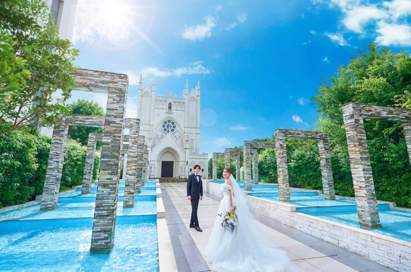 01.<水・光・空・緑が祝福>180年の時を経たアンティークステンドグラスが印象的な大聖堂