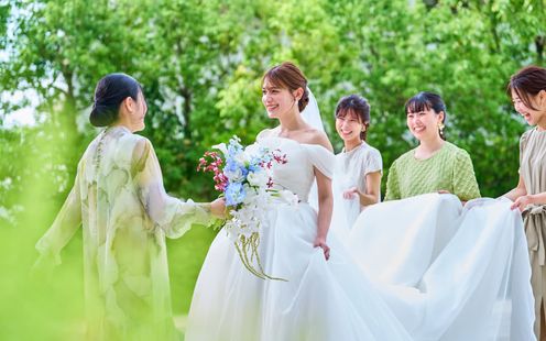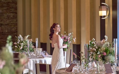 大切な人たちに囲まれ、最愛の人と愛を誓う日だからこそ、ここにしかない特別なものを身に纏っていただきたい。その想いからFIVESTAR WEDDINGの《THE LOVEL》と最新《BRANM》は、オリジナルブランドとして誕生しました。当館では《THE LOVEL》と《BRANM》、2つのドレスブランドからお好みのドレスをお選びいただけます。トレンドを取り入れた数多くのドレス・和装・メンズ衣裳をラインナップしております。