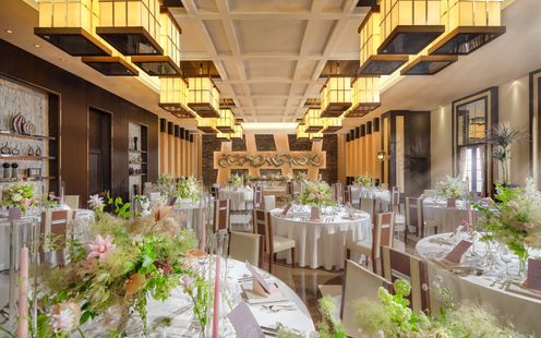 フランス語で「花」を意味するバンケット。選び抜かれた調度品やシャンデリアの輝きが優雅に流れる幸せなひとときを演出します。ホワイエも備えるのでゲストに祝宴前のひとときをお寛ぎいただけます。