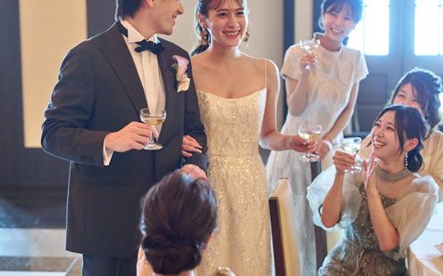 当館自慢のコースは、和のエッセンスが感じられるフランス料理。旬の食材にこだわり、結婚式らしいアーティスティックな逸品の中にも、和のお料理特有の旨味が感じられる、幅広い年齢層に親しまれる料理を提供します。「想い出の味を再現したい」「実家の野菜を使った一品をふるまいたい」こんなふたりの想いを料理で形にするお手伝いもしております。おふたりの結婚式でしか食べられないという特別感をゲストにお届けします。