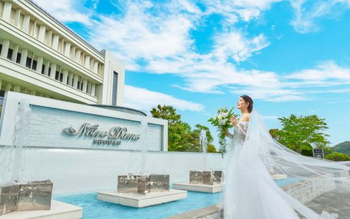 徳山駅より車で10分。噴水付きのエントランスがふたりの大切なゲストをお迎えします。結婚式当日は徳山駅から式場までシャトルバスを運行しているのでゲストも安心です。