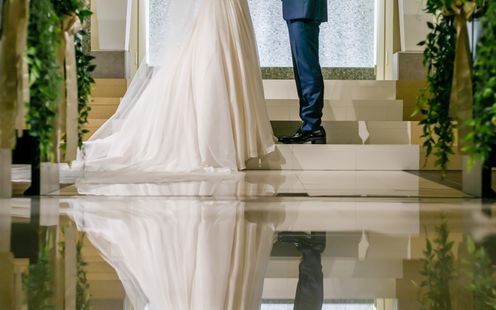 大正モダンのアールデコを取り入れた邸宅風の会場『エルベ』は、控えめで落ち着いた印象でありながら、どこか気品を感じさせる雰囲気が魅力。温もりのある木目調を活かした空間です。会場後方には、憧れの入場シーンが叶う階段が。2階からゲスト全員のお顔を見渡しながらの入場は、おふたりにとって忘れられないシーンとなるでしょう。会場には全天候型のインドアガーデンを併設。自然樹のシンボルツリーが植えられた緑溢れるスペースで、季節・天候を気にすることなくガーデンタイムをお過ごしいただくことができます。