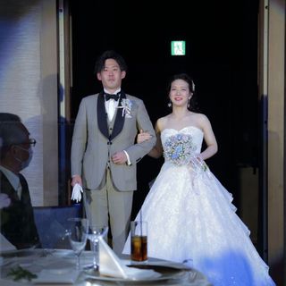 また、四国最大級のビッグスクリーンがあるため、遠くなりがちな親族席の家族もよく見えたと満足してくれました◎また、ケーキ入刀など、前に人が集まりやすい場面でも、大きなスクリーンに映してもらったことで、ゲストの皆様が自席から楽しむことができ、密を避けることもできました!