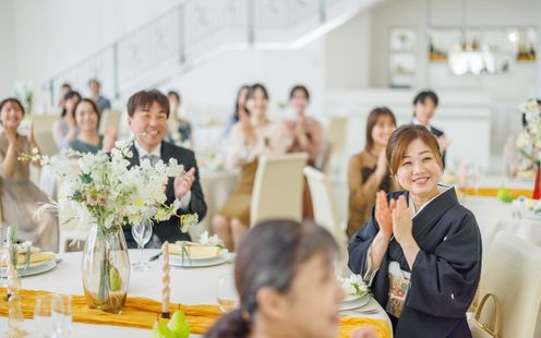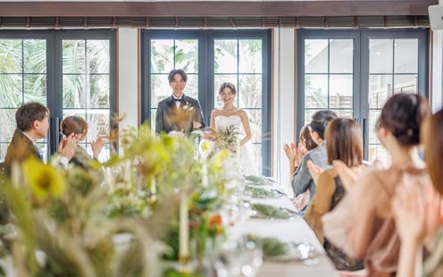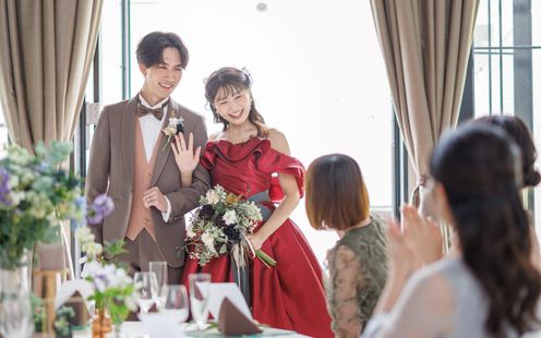 装花やテーブルクロス、小物など好みに応じて会場の雰囲気もおふたりらしく変わります。最新のトレンドから定番まで幅広くご用意し、おふたりのイメージに合わあせて、様々なコーディネートをご提案いたします。
